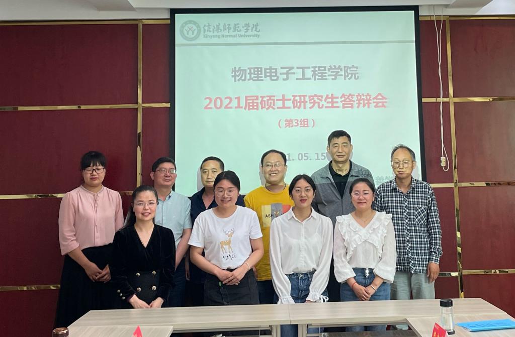 本次共有16名研究生参加2021届硕士学位论文答辩会,答辩分成3个小组同时进行,答辩委员会主席分别是中国科学院物理研究所石友国研究员、河南大学郑海务教授、信阳市高级中学左刚武高级教师;其他校外答辩委员会专家有华中科技大学周月明教授、中国科学院合肥物质科学研究院杜海峰研究员(线上)、信阳市南湾湖风景区中学陈冰高级教师;校内答辩委员会专家有刘墨林教授、陈新武教授、白春旭教授等教师组成。答辩会上答辩学生分别汇报各自学位论文的主要研究内容和工作创新点,汇报完毕后逐一回答答辩专家提出的问题。答辩委员会专家根据答辩情况一致同意11人授予理学硕士学位、4人授予教育硕士专业学位和1人授予同等学力硕士学位。