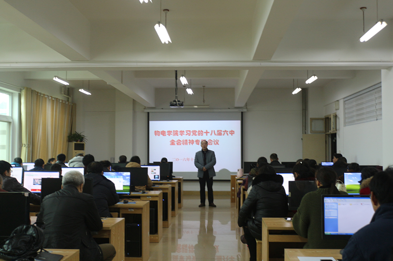 会上,柳士刚传达了学校关于学习和贯彻落实党的十八届六中全会精神的要求,解读了十八届六中全会公报、《关于新形势下党内政治生活的若干准则》和《中国共产党党内监督条例》等文件要点。他指出,严肃党内政治生活是保持党的凝聚力和战斗力的重要途径,是保持党的公信力和话语权的重要途径,是保持党的生命力和勃勃生机的重要途径,党的十八届六中全会专题研究全面从严治党问题,对于深化全面从严治党,不断增强党自我净化、自我完善、自我革新、自我提高能力,具有重大的现实意义和深远的历史意义。最后,他强调,全体教职工特别是教工党员必须充分认识到严肃党内政治生活的重要性和必要性,要把学习贯彻党的十八届六中全会精神作为重要政治任务,以这次学习为契机,迅速兴起学习宣传贯彻全会精神的热潮,全体教职工、教工党员和党员干部要牢固树立“四个意识”特别是核心意识和看齐意识,坚定维护以习近平同志为核心的党中央权威,自觉在思想上政治上行动上同以习近平同志为核心的党中央保持高度一致,把学习和贯彻十八届六中全会精神与实际工作相结合,与“两学一做”学习教育活动相结合,把全会精神转化为推动工作的强大动力,推动学院更好更快的发展。(物电学院 王文慧 何世远/供稿)