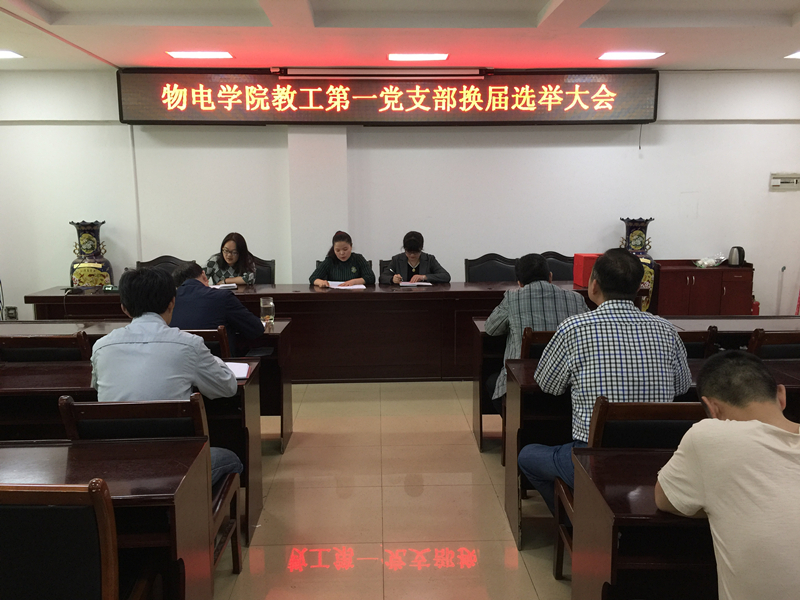 5月9日下午,物电学院教工第一党支部和教工第二党支部换届选举大会分别在理科楼511会议室和911会议室举行。教工一支部全体党员14人参加了会议,会议由本届支部书记张东玲主持。教工二支部全体党员15人参加了会议,会议由本届支部书记胡斌主持。
