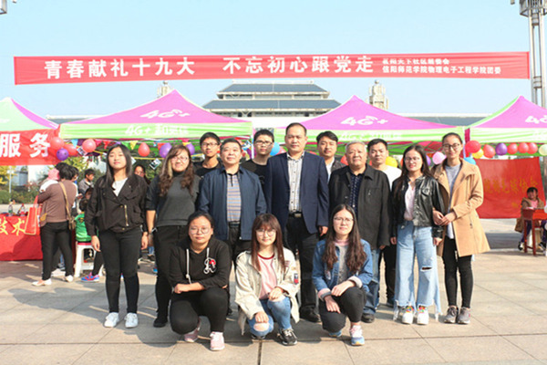 10月28日,学院以师生党员为主体,以五个学生社团为依托,在信阳市茗阳阁广场开展了以“青春献礼十九大,不忘初心跟党走”为主题的学习十九大精神实践活动。学院党委副书记李刚,教工党员李长庚、黄钰莹,社团指导老师冀晓群和部分学生党员参加了活动。活动期间,电子信息技术协会工作人员开展了家电、电脑义务维修、咨询、服务活动,在便利市民的同时增强动手实践能力,期间,社团成员对当地居民进行用电知识义务宣传讲解,获得了广大市民的连连称赞。