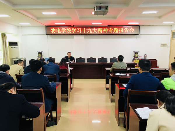 十九大召开以来,学院把学习贯彻十九大精神作为党员教育、党员学习的重要内容,通过一系列学习党的十九大精神活动的开展,引领全体教职工和青年学子响应国家号召,肩负起国家发展使命,不忘初心,将思想和行动统一到党的十九大精神和部署上来,以党的十九大精神引领新时代。(物电学院 张康华 黄钰莹 袁琳/供稿)