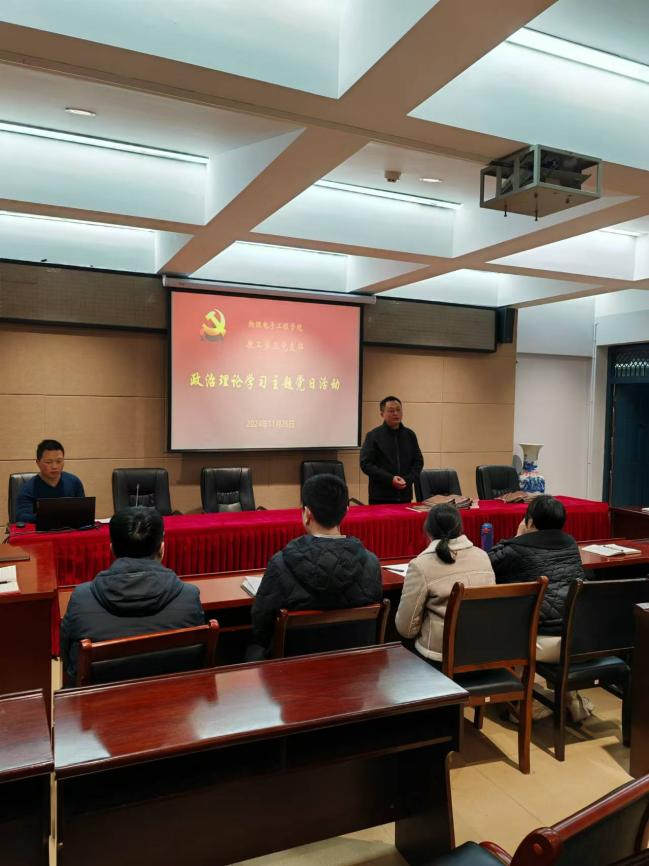 12月6日,学院教工第一党支部在理科楼北楼911开展了“学习贯彻党的二十届三中全会精神”主题党日活动,活动由支部书记陆阳主持。会上,陆阳带领支部党员深入学习了党的二十届三中全会精神,着重学习了《中共中央关于进一步全面深化改革、推进中国式现代化的决定》。陆阳指出,党的二十届三中全会是在以中国式现代化全面推进强国建设、民族复兴伟业的关键时期举行的一次十分重要的会议,支部全体党员应做好自学,要带着使命学、带着责任学、带着问题学,深刻理解把握习近平总书记重要讲话的丰富内涵,切实增强贯彻落实的思想自觉和行动自觉,将学习成果转化为推动工作的强大动力。最后,支部党员一起集中观看了中央党校(国家行政学院)副校长龚维斌教授做的题为《发挥经济体制改革作用,全面推进各项领域改革》的辅导报告。