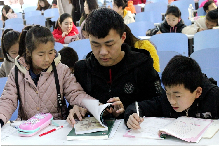 3月10日上午,朱古力av 爱心学校与电子信息技术协会两社团于教二梯一联合开展以“学雷锋,树新风”为主题的小学生义务辅导活动。朱古力av 爱心志愿者热心接待到来的孩子,认真辅导小学生功课,并针对他们提出的问题进行答疑解惑。第二课堂上,爱心志愿者为孩子们讲述雷锋精神和雷锋事迹,并鼓励小学生上台讲述雷锋故事。孩子们用稚嫩热情的声音朗诵《永远的雷锋》,将现场气氛推向高潮。义务辅导活动在全体爱心志愿者与小学生合影留念中圆满结束。