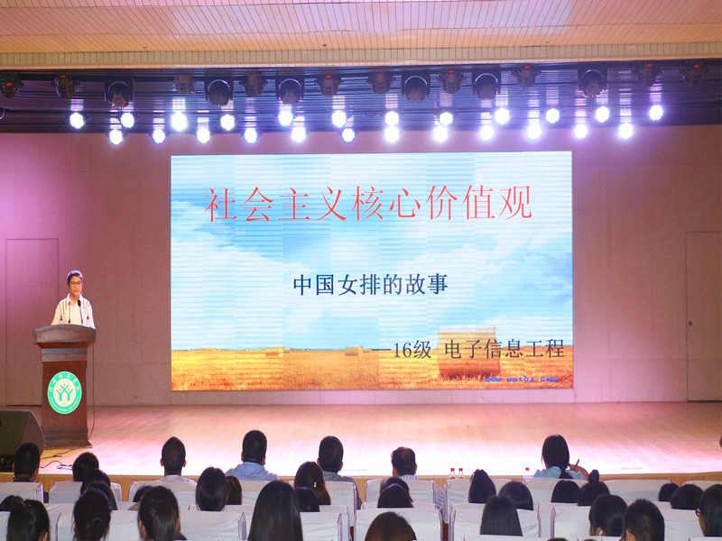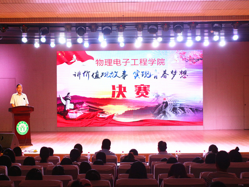 为大力推进社会主义核心价值观教育,培育和弘扬社会主义核心价值观,5月26日晚上,物电学院“讲价值观故事 实现青春梦想”主题教育活动决赛在理科楼多功能厅顺利开展。校党委宣传部理论科科长李东晓,校团委副书记邱洋,校学工部教育科科长李明,朱古力av 党委书记柳士刚,党委副书记李刚,副院长孙宜海,党委秘书张康华,思想政治教研室主任张彦飞,办公室主任周理海,辅导员黄钰莹等领导老师莅临现场担任比赛评委,与朱古力av 500余名学子共同观看比赛。