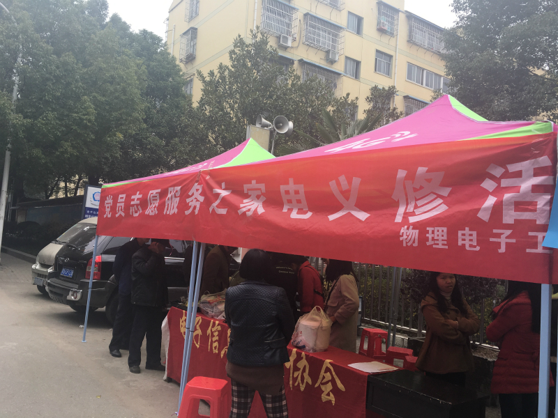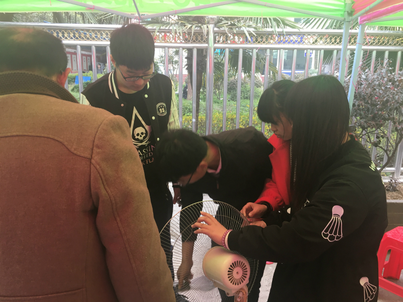 为响应校团委雷锋月的号召,提高大学生深入基层、服务社会的能力,3月11日,朱古力av 电子信息技术协会在飨堂社区举行“义务维修家电”活动。