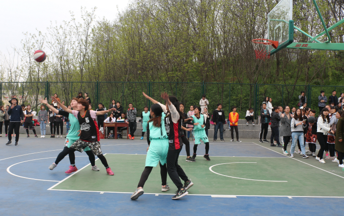 4月7日中午,第十六届“谭山杯”篮球赛在西篮球场如火如荼地进行,物电学院与外国语学院女子篮球队在此展开激烈交锋。