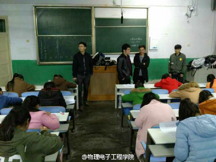 学生管理工作的良性开展,11月12日晚,物电学院在教二、教三组织2016级全体新生参加校规校纪考试,张康华老师、杨勇老师以及学生会主席团成员参与巡考工作。
