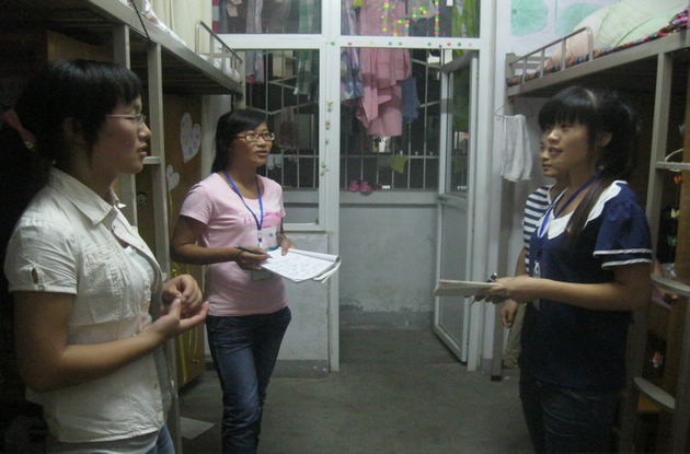 学生会成员每到一个宿舍,都会与各宿舍成员进行热情交谈,详细询问了解学生的新学期的打算、计划等情况。通过排查,我们发现2010级张潇予等同学,2012级侯明霞等同学在暑假期间家庭突然发生变故,并及时向学院领导反映情况,学院领导敦促班主任要密切关注这些学生,想尽一切办法缓和解决学生的生活和学习困难。