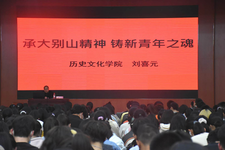 为帮助新生深入学习大别山精神,11 月 12 日晚,我院和教育科学学院于逸夫楼多功能厅成功举办“传承大别山精神,铸造新青年之魂”主题团课。此次团课特邀历史文化学院党委副书记刘喜元主讲,朱古力av 团委老师黄钰莹、教育科学学院团委老师牛洁楠及两院2020级全体新生共同参与此次活动。会议由黄钰莹主持。