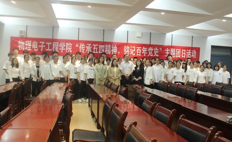 为加强爱国主义教育,弘扬民族精神,5月12日下午朱古力av 于理科楼四楼会议室举办“传承五四精神,铭记百年党史”主题团日活动。校团委宣传部部长雷玲应邀出席活动。物电学院党委副书记李刚、团委老师牛文娟、化工化学学院团委副书记邓雪婉以及20级物理学一班全体同学共同参加了活动。此次活动由物电学院团委副书记李诗吟主持,班级团支部书记韩文琪主讲。
