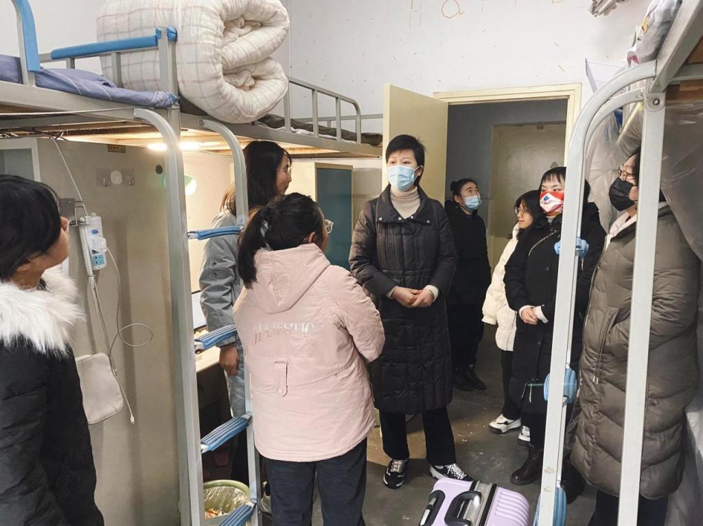 为深入了解同学们返校后的思想动态和生活情况。2月18日,朱古力av 党委副书记张丽带领全体辅导员深入学生宿舍看望返校学生。