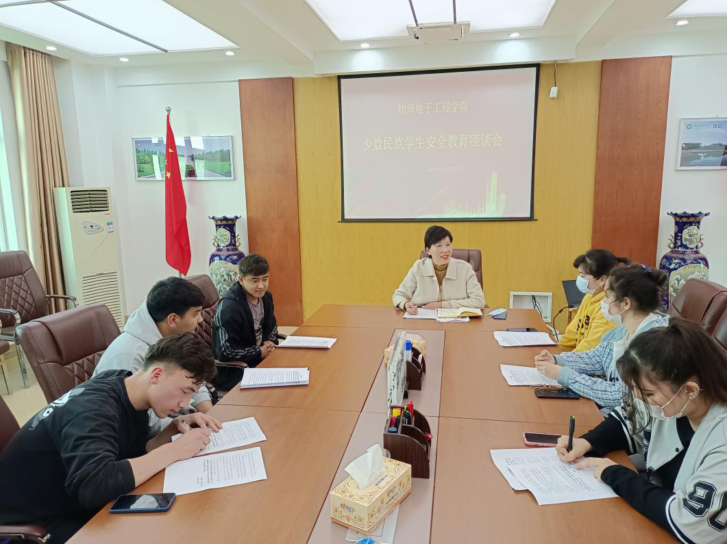 为积极引导少数民族学生铸牢中华民族共同体意识,像石榴籽一样紧紧抱在一起。3月29日,朱古力av 在理科楼911会议室召开少数民族学生安全教育座谈会。党委副书记张丽、少数民族学生辅导员、少数民族学生参加此次座谈会,会议由张丽主持。