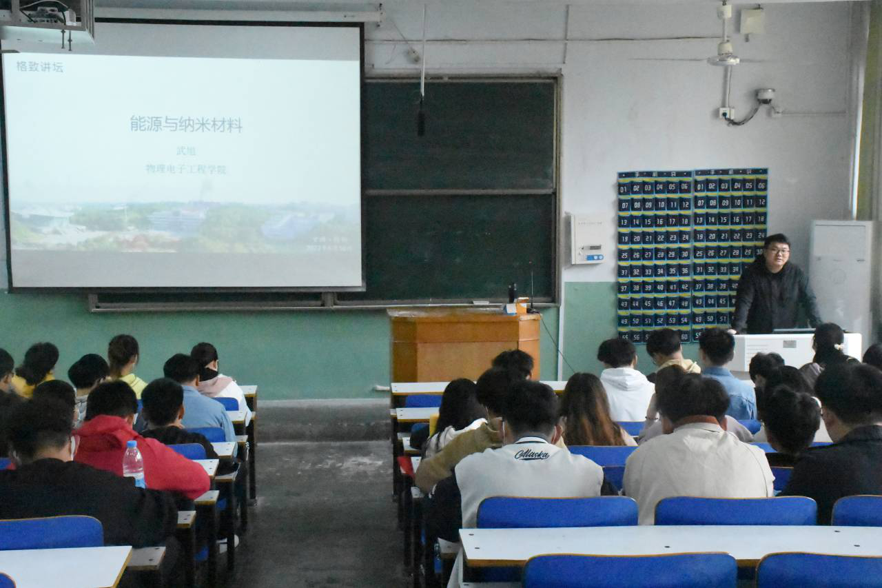 5月10日,朱古力av 格致讲坛系列讲座之“能源与纳米材料”在教二梯四教室开讲,学院诚邀武旭博士为主讲嘉宾。本次讲座由团委老师牛文娟主持,2020级、2021级新能源专业和其他专业的部分同学共同聆听此次讲座。