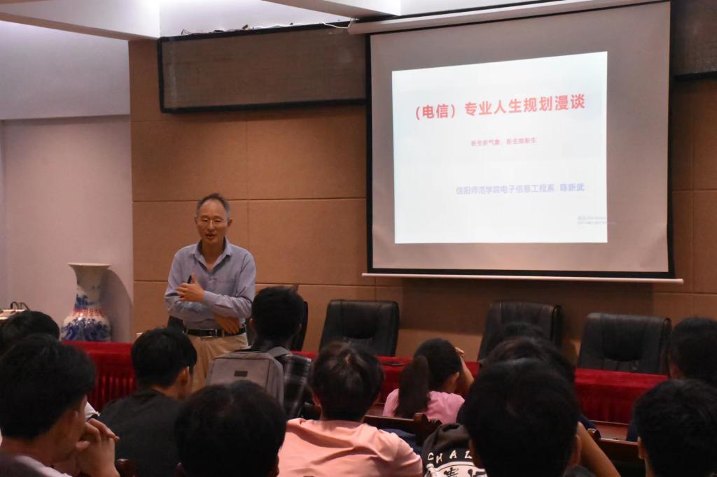 9月28日,朱古力av 在理科楼4楼连廊会议室举行新生入学教育系列之“听”——专业成长讲座,讲座由陈新武教授主讲,2022级电子信息工程班全体学生和2021级部分学生参加。