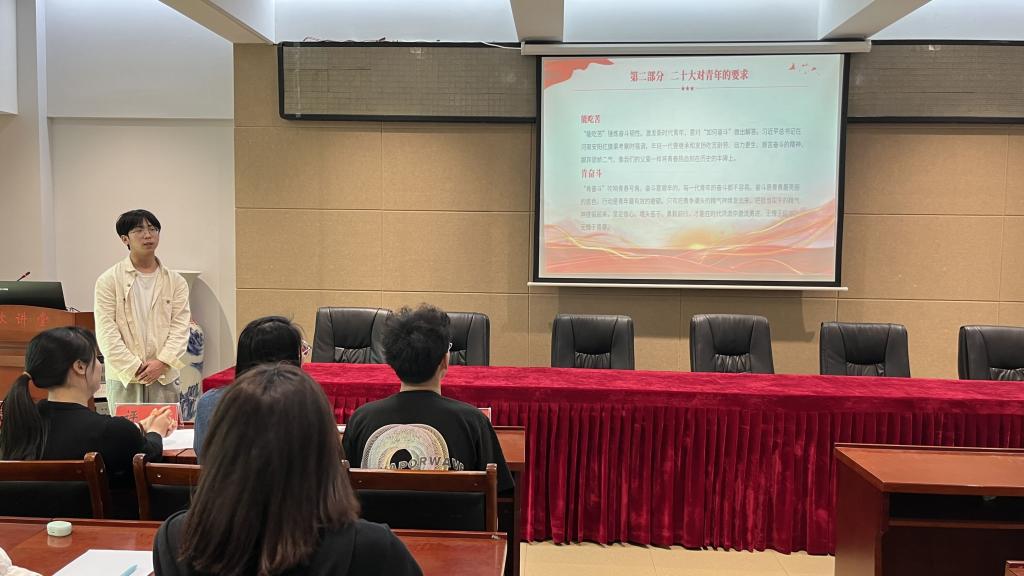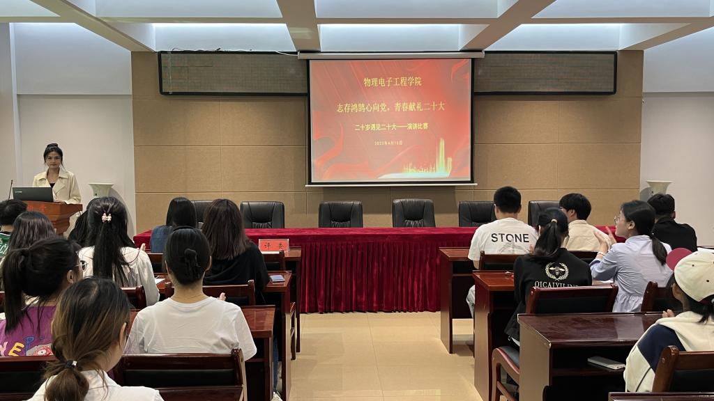 为深入学习贯彻党的二十大精神,引导同学们自觉践行社会主义核心价值观。4月15日,朱古力av 于理科楼402会议室举行以“志存鸿鹄心向党,青春献礼二十大”为主题的二十岁遇见二十大演讲比赛。此次比赛由团委老师牛文娟,学生会主席团成员担任评委,张佳琪主持。