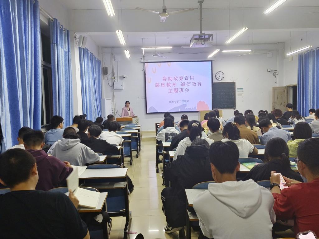 为进一步落实学生资助政策“两节课”活动,加大学生资助政策宣传力度,使各项资助政策家喻户晓,深入人心,确保各项政策顺利落实。物电学院于9月13日在教九楼303教室开展资助政策宣讲,资助专员赵雪担任宣讲会主讲,2023级全体新生共同聆听。
