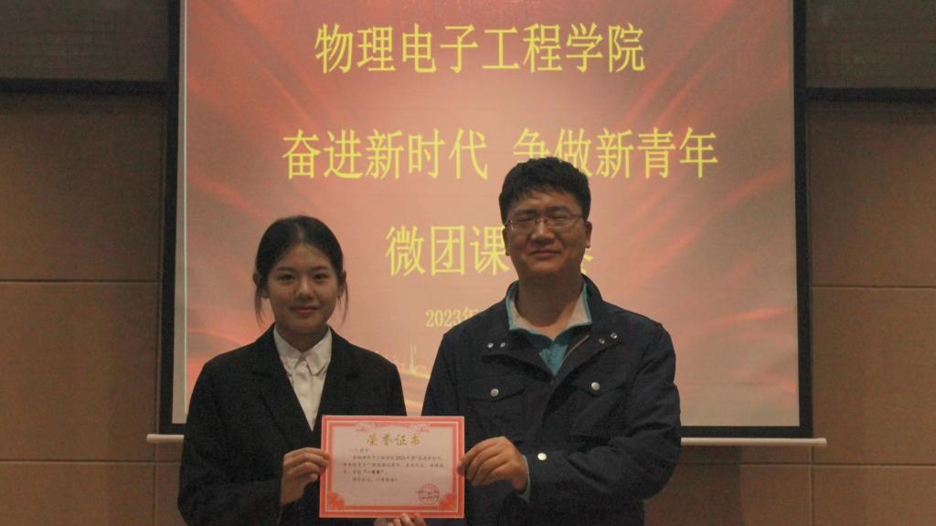 经过评委组认真评选,2022级电子信息工程班刘喆荣获“一等奖”;2022级物理学一班张子韵、2023级物理学二班李好荣获“二等奖”;2023级材料物理班尹玉洁、2022级电子科学与技术班程赞璞、2022级新能源科学与工程班燕佳怡荣获“三等奖”。