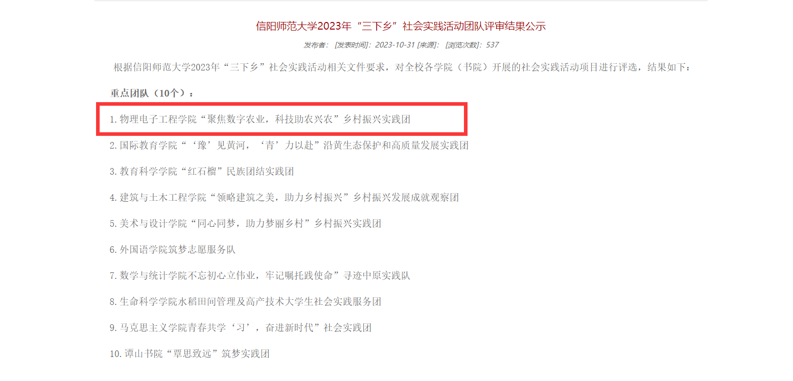 近日,朱古力av 2023年“三下乡”社会实践活动评审会公布评审结果,朱古力av 的“聚焦数字农业,科技助农兴农”乡村振兴实践团被评为重点团队。