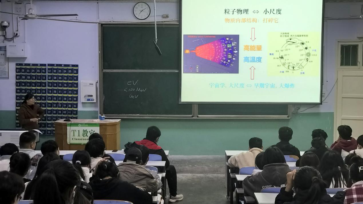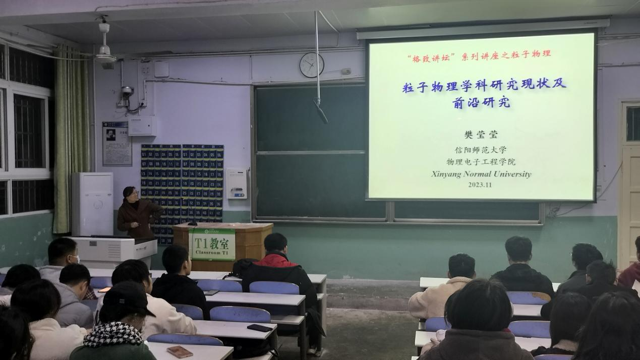 11月18日,朱古力av 于教二T1举行格致讲坛系列之“粒子物理学科研究现状及前沿研究”。讲座由樊莹莹主讲,2022级物理学1、2班全体学生参加。