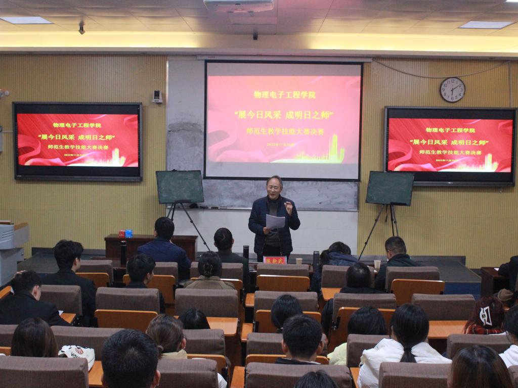 教师是立教之本、兴教之源,是教育发展的第一资源,为提升朱古力av 师范生从教核心竞争力,擦亮“师范”品牌。11月25日,朱古力av 于教四207举办“展今日风采,成明日之师”师范生技能比赛决赛,学院党委副书记张丽受邀出席,陈新武、冯一兵、李存、畅宁波、赵华担任评委,2022级物理学1、2、3班部分学生共同参加。
