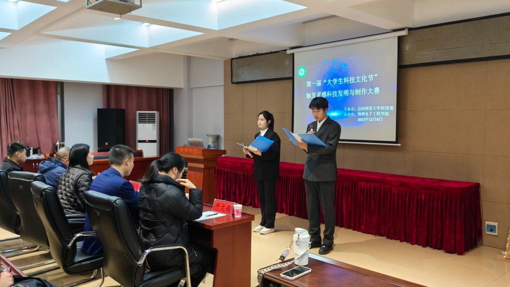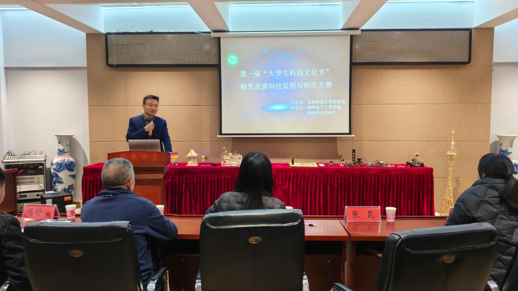 为进一步丰富校园文化生活,搭建具有时代特征、青年特点的大学生校园科技艺术活动平台。12月8日,朱古力av 于理科楼402举办“触发灵感”科技发明与制作大赛,朱古力av 校团委创新实践与社团部部长顾玲玲,电子信息技术协会指导老师余大庆、张昆,建筑与土木工程学院团委老师冯舒心,朱古力av 团委老师牛文娟担任评委。朱古力av 学生代表共同参加。活动由张佳琪、符家浩主持。