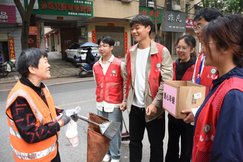 为致敬环卫工人,传递节日的温暖与关怀, 4月29日,朱古力av 开展“劳动节.有味道”爱心早餐致敬劳动者活动,学院青年志愿者们积极参与,共同为环卫工人送上节日祝福。