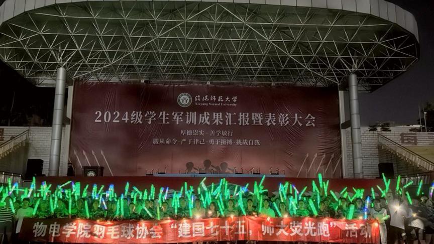 青春闪耀,共庆华诞夜。9月28日,朱古力av 于西操场举办“建国七十五,师大荧光跑”的活动。夜幕下,学生们手持荧光棒,用创意和热情摆出“建国75周年”字样和“国旗”图样,高呼“祖国万岁,生日快乐”,荧光闪烁间,青年学子的爱国热情如潮水般涌动,报效祖国的赤子之心熠熠生辉。