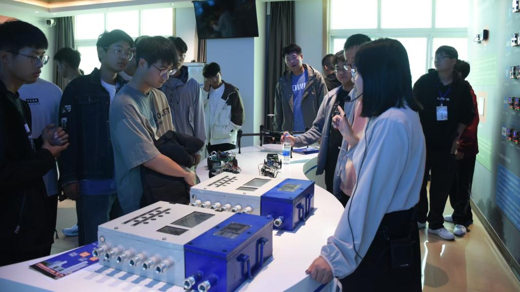 蔡慧冉阐述了众创空间的起源背景、组织架构及其发展历程。带领新生们探访众创空间的会议室、创客驿站以及分析测试区等六个部分。在创新成果展示区,他们被往届学生的优秀科技作品深深吸引,如“数字调频收音机”、“智能平衡小车”、“超声波测距仪”等。
