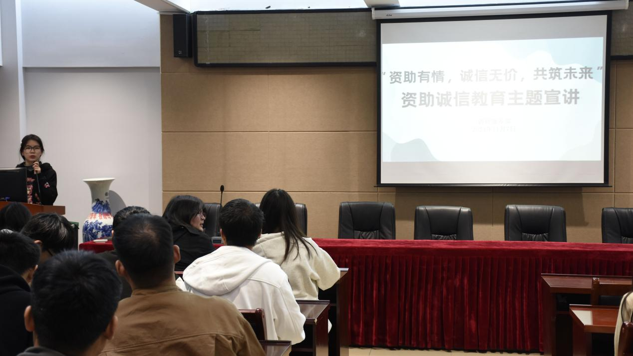 为提升学生的诚信意识,引导学生树立正确的世界观、人生观、价值观。11月7日,朱古力av 于理科楼402会议室举办“资助有情,诚信无价,共筑未来”资助宣讲活动。本次活动由朱古力av 国家励志奖学金获得者2023级曹欣宇、尹玉洁、杨涵亦、许溪、周腾洁五位同学担任宣讲人。2024级学生积极参与。