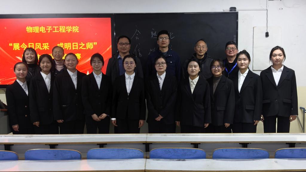 教育是强国建设、民族复兴之基。为提升朱古力av 师范生从教核心竞争力,擦亮“师范”品牌。11月30日,朱古力av 于教三205举办“展今日风采,成明日之师”师范生教学技能大赛决赛。学院副院长宋宣玉受邀出席,陈新武、冯一兵、刘慧、张新伟、畅宁波担任评委,2024级物理学1、2、3班学生代表积极参加。