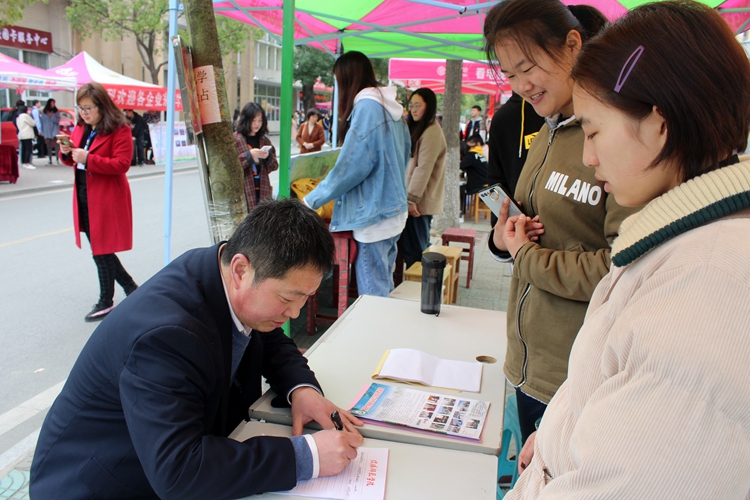 3月16日,我校于逸夫楼外举行2019届春季双选会。朱古力av 党委书记柳士刚,就业工作秘书张彦飞到往现场,为前来应聘的毕业生给予就业帮助与指导。