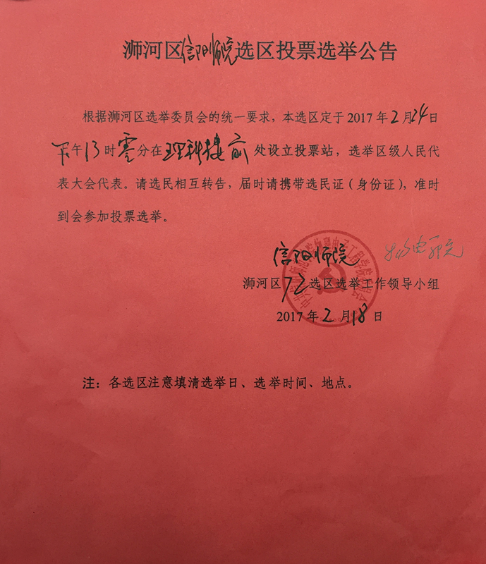 浉河区第五届人大代表选举信阳师院选区投票选举公告
