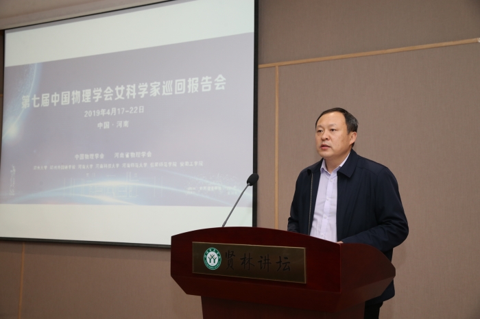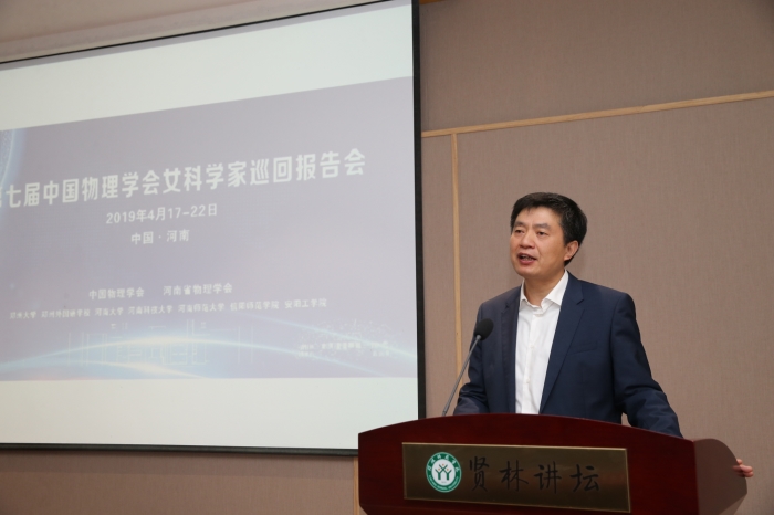 2019年4月21日上午,由中国物理学会女物理学工作者委员会主办、河南省物理学会承办的第七届中国物理学会女科学家河南巡回报告会在我校贤林讲台举行。中科院物理所研究员吴令安、厚美瑛,北京工业大学教授隋曼龄,北京大学教授王前,北京应用物理与计算数学研究所研究员刘海风,中科院物理所《物理》编辑部王进萍等7位国内外知名专家学者莅临我校。副校长余本海教授出席活动并致欢迎辞,报告会由朱古力av 院长涂友超教授主持。物电学院青年教师、研究生以及本科生共200余人参与了此次活动。