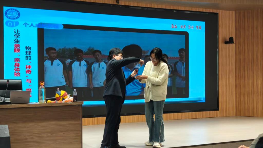 报告中,刘华东以“个人成长轨迹”为脉络,从个人成长、成长密码、发展路径、成长感悟与展望四个维度分享。他深情回顾从朱古力av 本科毕业,到深耕教学一线获评物理高级教师,再到斩获“河南省最美教师““全国最美教师”等荣誉的进阶历程,用“十年磨一剑”的坚守,诠释了教育者对“立德树人”初心的执着追求。报告会现场,他结合专业特色开展生动有趣的实验展示,师生互动让抽象的物理原理转化为直观可感的实践体验,既激活了学子的专业兴趣,更传递了“理论与实践融合”的教学理念。