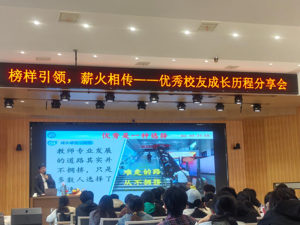 谈及在校学习心得,刘华东提出“成长四要素”:对标榜样、借力平台、坚持创新、心怀初心,并直指“等毕业再实践”的认知误区,鼓励学子们在校期间主动扎根专业实践,提前锻造教育教学硬本领。最后,他以“优秀是一种选择”寄语青年学子,称教育领域的“优秀之路”虽难走却少拥挤、更具价值,盼大家以长远眼光深耕教育,在服务国家基础教育事业中实现人生价值。