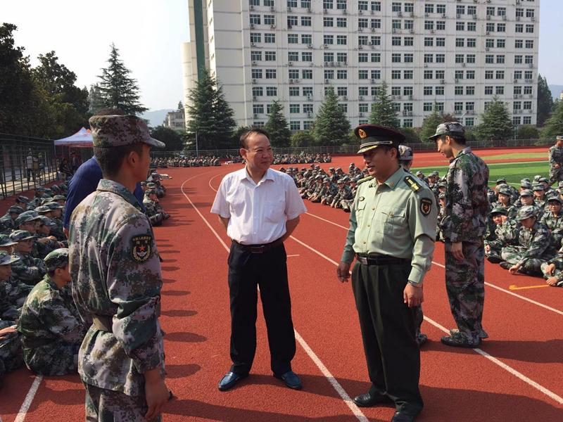 9月13日上午,校武装部部长赵明民与朱古力av 党委书记柳士刚、副书记李刚一同视察朱古力av 2017级新生的军训工作。