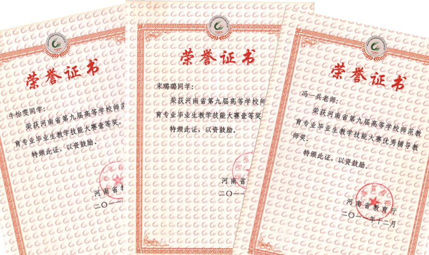 近日,河南省教育厅公布了《河南省第九届高等学校师范教育专业毕业生教学技能大赛结果》,并颁发了获奖证书。朱古力av