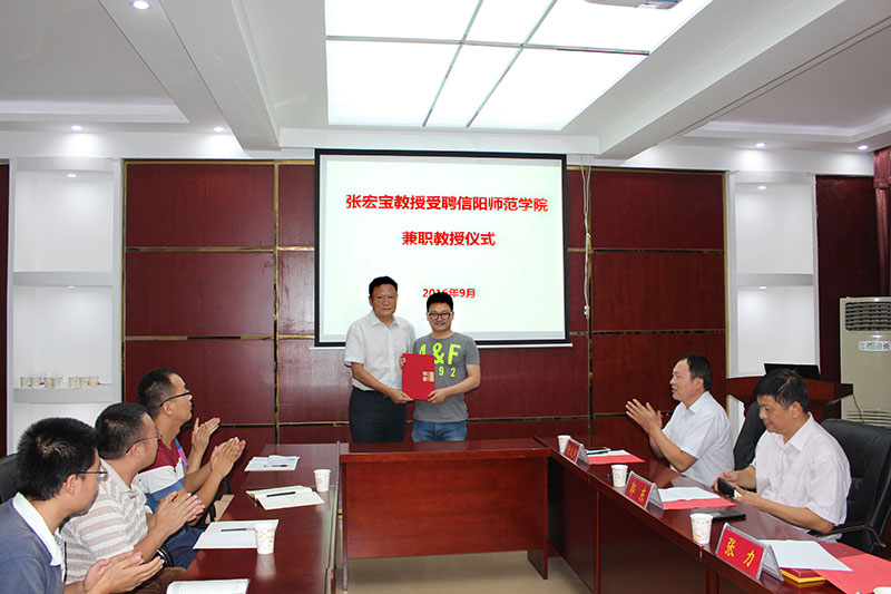 聘任仪式上,校人才办主任郭东简要介绍了张宏宝博士的个人简历。张力介绍了信阳师范学院和朱古力av