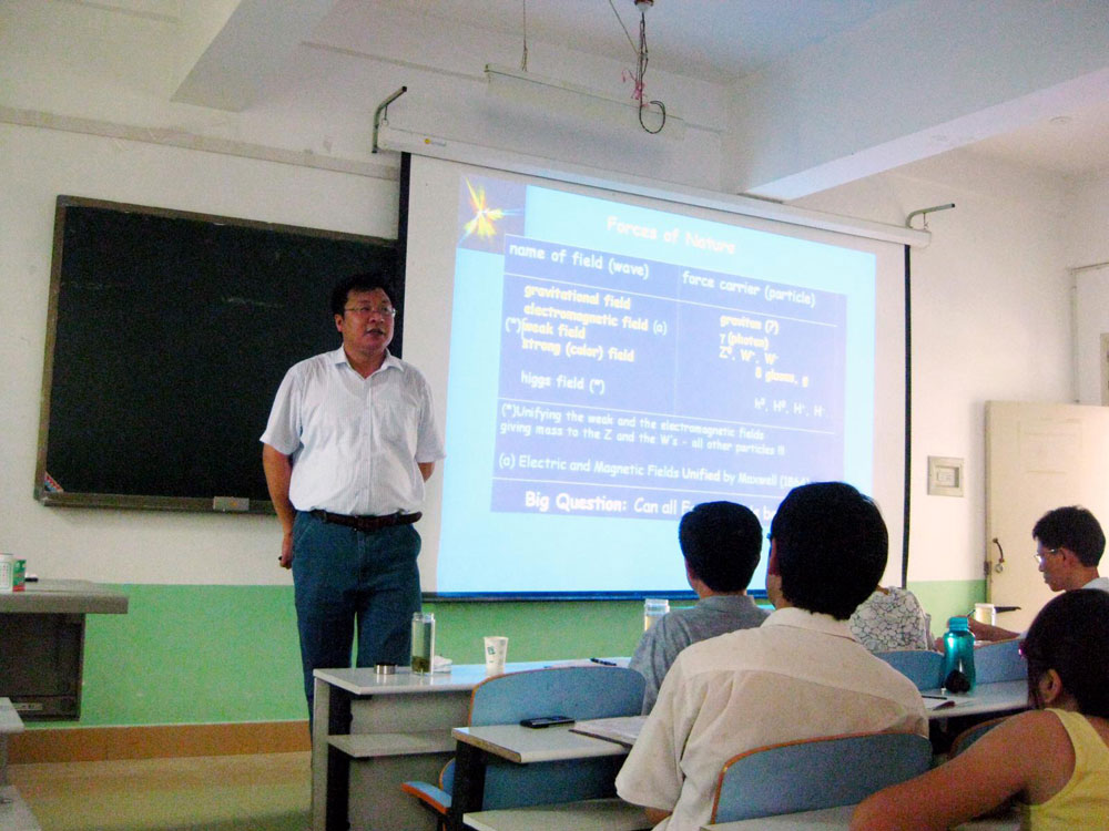 报告中,杨亚东教授以粒子物理学还原论为切入点,深入浅出的阐释了非阿贝规范场的量子化、规范场论理论的重整化、重整化群方法、量子色动力学、超玄等当前粒子物理理论。杨教授通过解读欧洲大型强子对撞机的结构、运行、具体的物理目标等,详细介绍了当前粒子物理的实验现状,并着重对粒子物理学的超高能、超精密两个方向进行了深入的剖析。报告会后,杨教授耐心细致的回答了同学们的提问,并与该院师生就当前重味物理中的一些具体问题进行了具体的讨论。