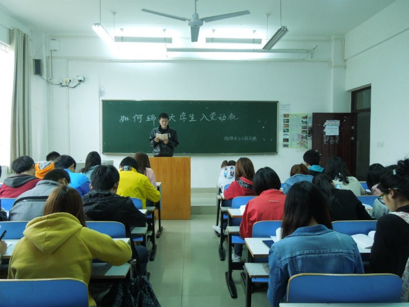 按照学校党校课程安排,为使朱古力av 党校学员更好的学习和理解党的十八大精神,4月12日下午,朱古力av 二十一期党校学员在逸夫楼203教室开展了以“如何端正大学生入党动机”为主题的讨论课。朱古力av 26名党校学员共同参加了此次讨论课。讨论课由朱古力av 二十一期党校组长冯雷豪主持。