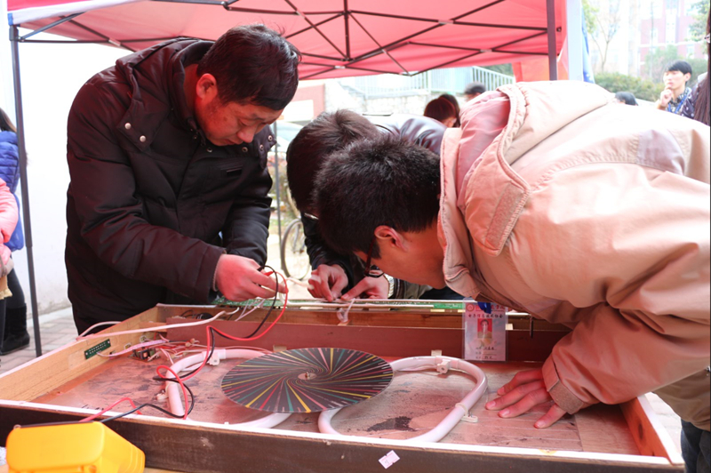 党总支书记刘百超深入活动现场进行指导,要求队员细心、耐心、细致开展好本次活动,让广大群众实实在在地感受到党的群众路线教育实践活动带来的新风尚;教工党员老师罗浩在活动现场耐心地对群众带来的电器进行认真的检修,对队员们在维修过程中遇到的疑难杂症进行仔细分析,并要求队员们认真总结维修过程中存在的问题并从中汲取经验,以便更好的运用到下一次的维修活动中。