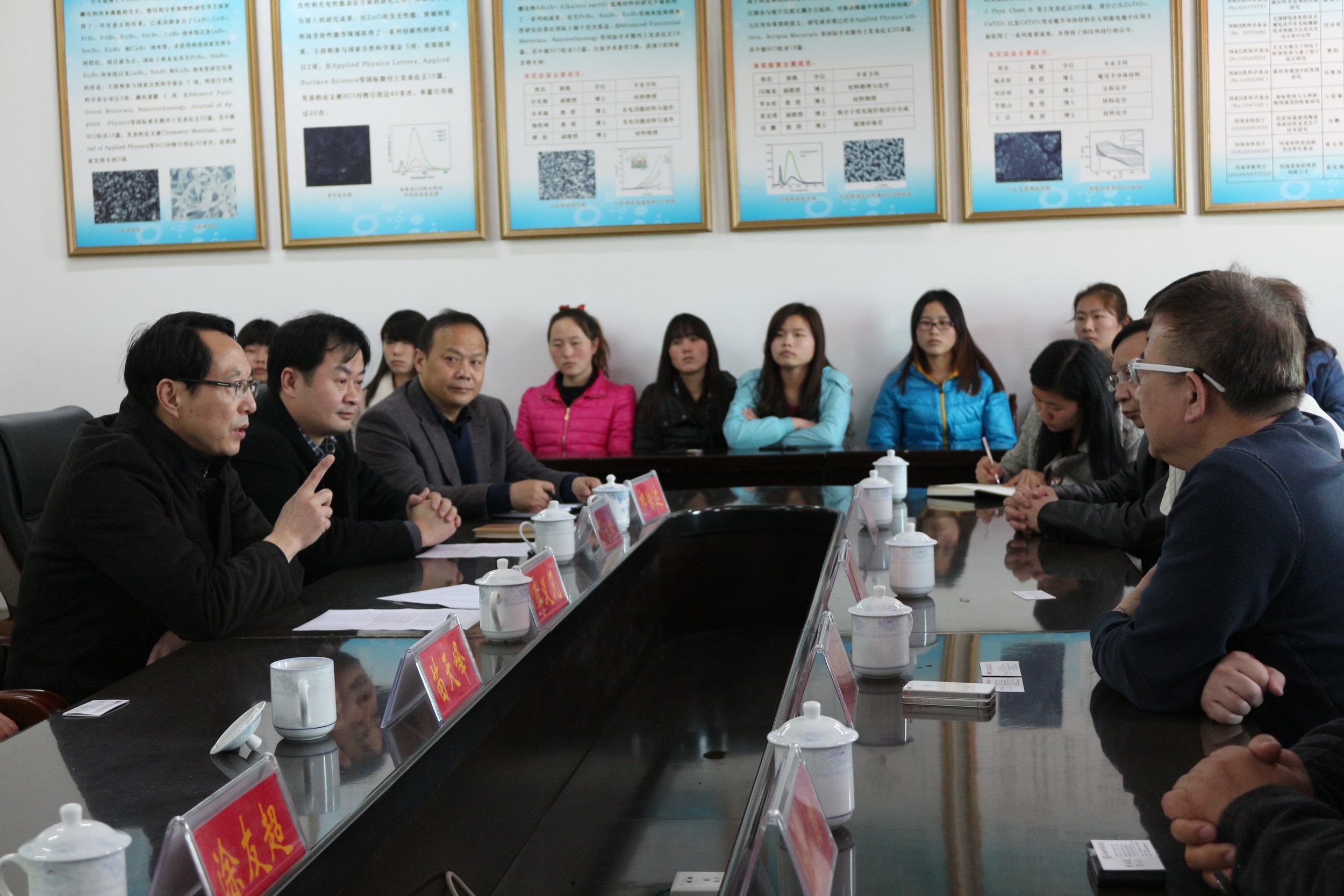 李义凡副院长从学校历史沿革、学科与专业结构、人才培养、协同创新、办学特色等方面简要介绍了学校情况以及目前开展校企合作情况。他谈到,校企合作对学校和企业是共赢的,有利于校企双方的共同发展。同时,通过校企合作进一步明确企业对专业技术人才的需求导向,有利于学校人才培养模式的调整。随后,河南天扬光电科技有限公司总经理叶同基介绍了企业的发展及规模、业务方向和技术链、公司业绩及主要客户、科技与人才需求、未来发展规划等情况。