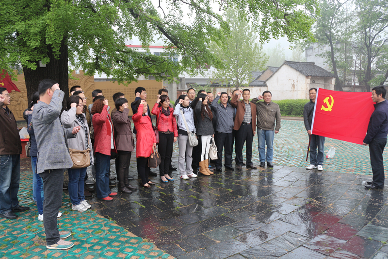 当日上午出发前,党总支书记苗天峰作了动员讲话。他阐述了开展本次活动的目的和意义,指出了活动中的注意事项,提出了明确要求。全体党员一到目的地,就按照计划投入了参观学习活动。他们认真地参观了红二十五军英雄事迹展览,缅怀了红二十五军先烈的光辉历史,考察了红二十五军军部医院旧址,走访了2.5公里的何家冲红军长征路,亲身感受了红军长征的艰难与困苦。在红二十五军长征出发誓师广场的银杏树下,全体党员庄严地重温了入党誓词。