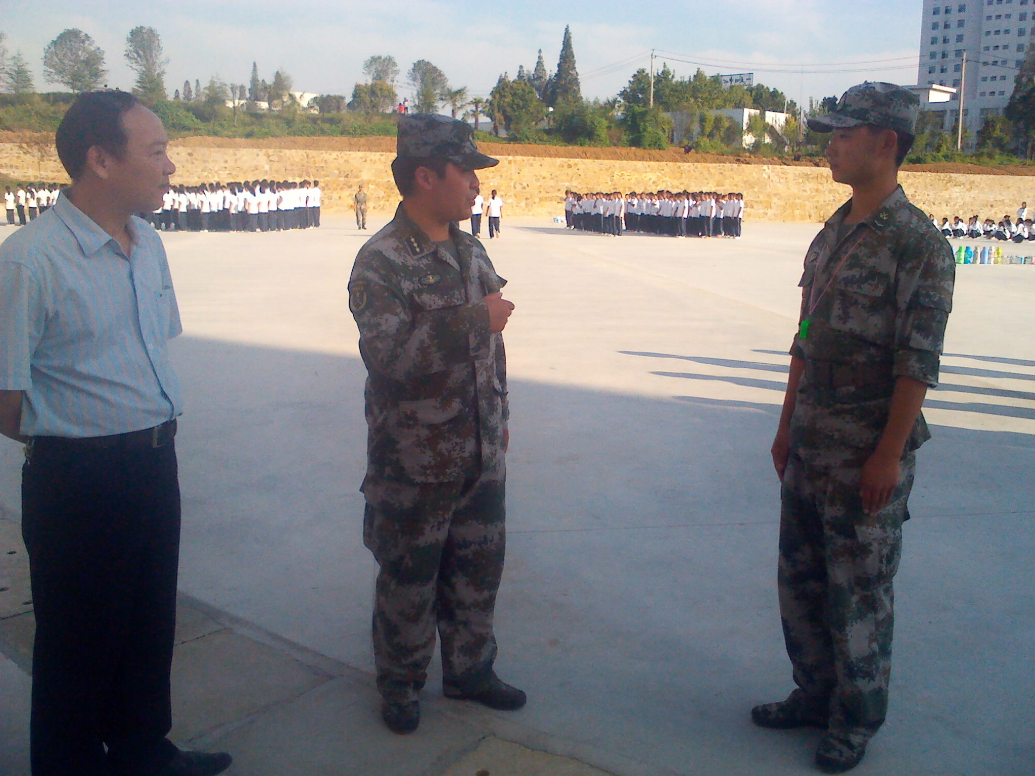 校学生处领导、军训部队首长视察朱古力av 新生军训情况