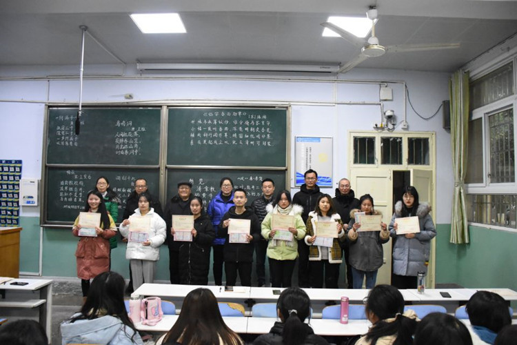 随后,朱古力av 于教二梯一教室进行了获奖选手粉笔字展示和颁奖。在粉笔字展示环节中,一、二等奖获得者顺序上台在黑板上书写随机抽取的诗歌内容,学子们全神贯注、精心排版、行云流水、一气呵成,凭借端庄娟秀、整齐大方的字体向在场观众展现了中华汉字的独特魅力,赢得评委和观众的一致好评。最后,大赛评委老师为获奖人员颁发证书、奖品并合影留念。