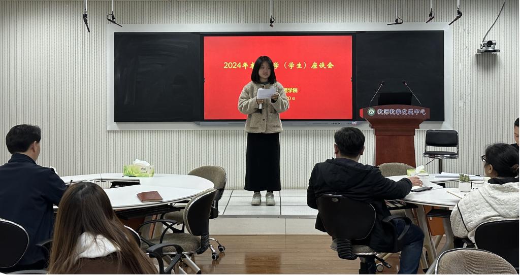 为深入贯彻习近平总书记全国教育大会讲话精神,推进“以本为本”,践行“学生中心,产出导向,持续改进”教育理念,推动学院本科教育教学工作高质量发展,朱古力av 于2024年11月20日在教7楼501室召开了本科教学学生座谈会。学院院长龚克、副院长陆阳、副院长宋宣玉及各专业负责人、辅导员与本科学生代表面对面交流。座谈会由宋宣玉负责。