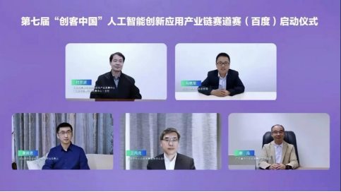 在WAVE SUMMIT 2022深度学习开发者峰会上,工业和信息化部网络安全产业发展中心(工业和信息化部信息中心)主任付京波,北京市中小企业公共服务平台负责人黄晓恩,上海市中小企业发展服务中心主任卫丙戊,广东省中小企业发展促进会会长谢泓与百度AI技术生态总经理马艳军分别致辞并共同启动了本次赛道赛。