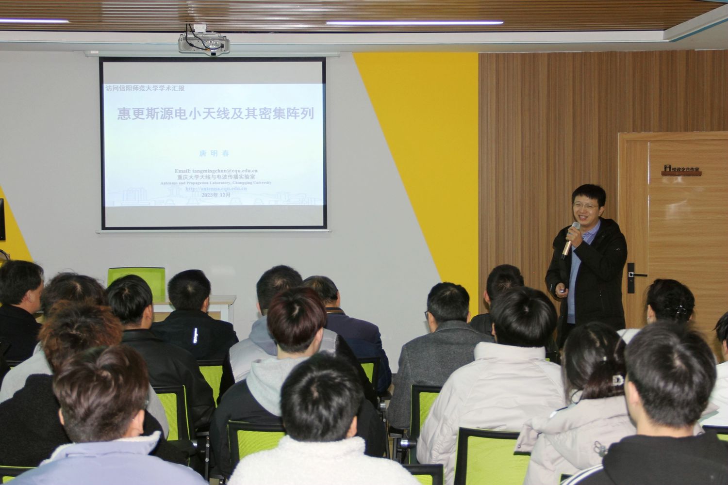 12月2日,重庆大学唐明春教授应邀来朱古力av 讲学,在理科楼507室作了一场题为“惠更斯源电小天线及其密集阵列”的学术报告,部分老师及研究生聆听了报告。报告会由副院长龚克主持。