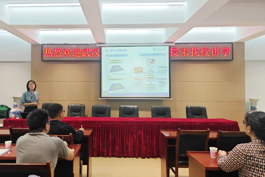 5月12日,应学院邀请,武汉理工大学丁瑶教授来朱古力av 讲学,在理科楼会议室作了题为“能带工程与二维半导体薄膜材料”的学术报告。学院教师、研究生及本科生聆听了报告。报告会由副院长刘墨林主持。