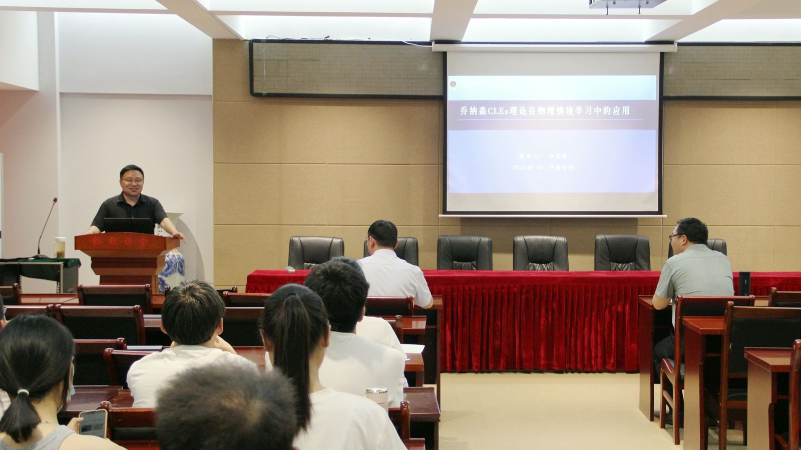 5月18日下午,应学院邀请,安徽师范大学汪志荣教授在理科楼四楼连廊会议室作了题为“乔纳森CLEs理论在物理情境学习中的应用”的学术报告。报告会由张新伟博士主持,部分教师、研究生及本科生聆听了报告。